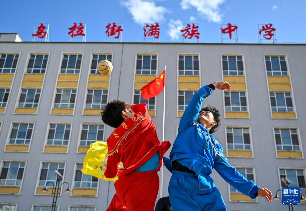 9月16日,乌拉街满族中学学生在操场进行珍珠球比赛。