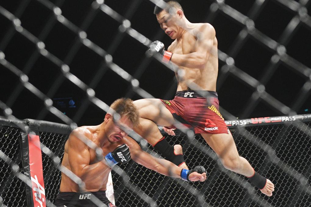 2018年6月,李景亮(右)与日本选手阿布大治在比赛中。新华社发(邓智炜摄)