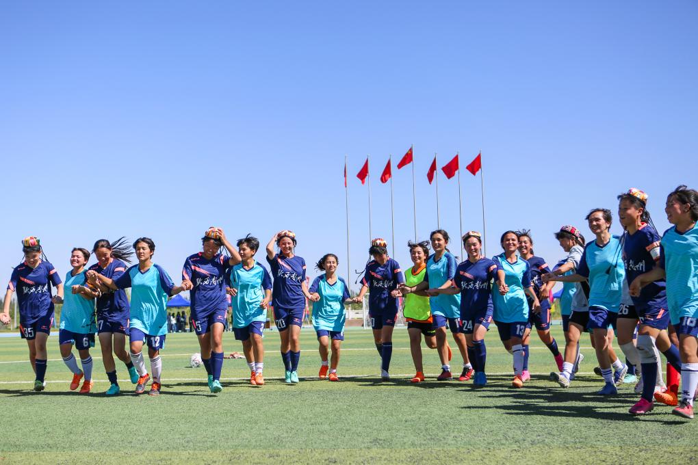 2023年8月,贵州和新疆的小选手们在友谊赛后拉起手向观众致意。新华社记者 郝昭 摄