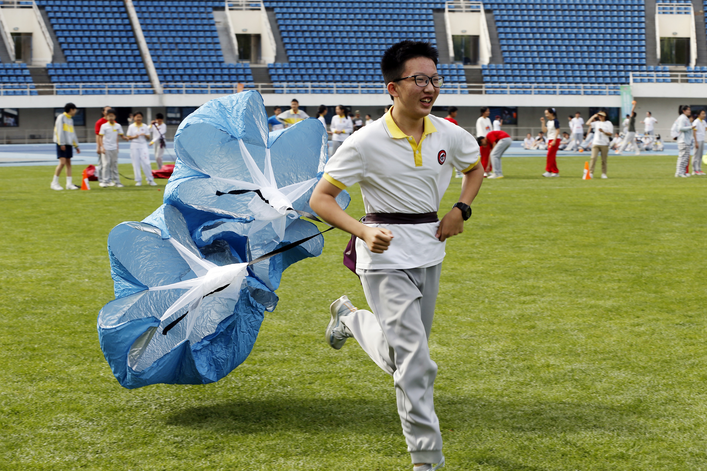 入场式上,同学们展示了广播操、军体拳、武术、艺术体操、创编舞蹈等,并以生动的表现形式展示了富有创意的中国传统文化。比赛场上,同学们进行了田径项目跑、跳、投竞赛,以及“阻力伞接力跑”“旋风跑”“纵跳摸高”等趣味游戏比赛,向家长及来宾展示了学校“阳光体育锻炼”的成果。