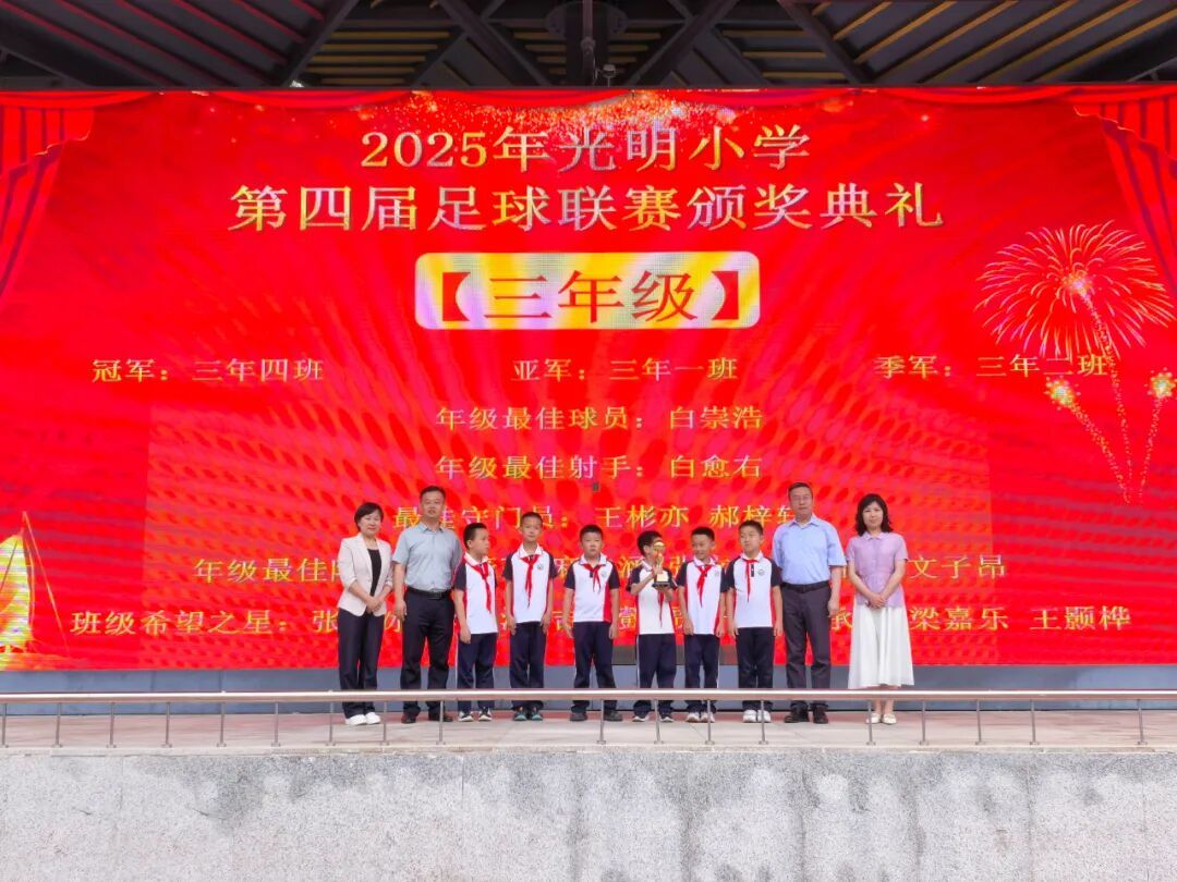光明小学第四届足球联赛虽已落幕,但它所点燃的体育精神、凝聚的团队力量、迸发的青春活力,将持续在校园激荡回响。以此为崭新起点,学校足球事业必将迈上新台阶,为孩子们的成长之路镌刻更多精彩,不断培育出更多热爱足球、崇尚运动、勇敢逐梦的新时代光明好少年。