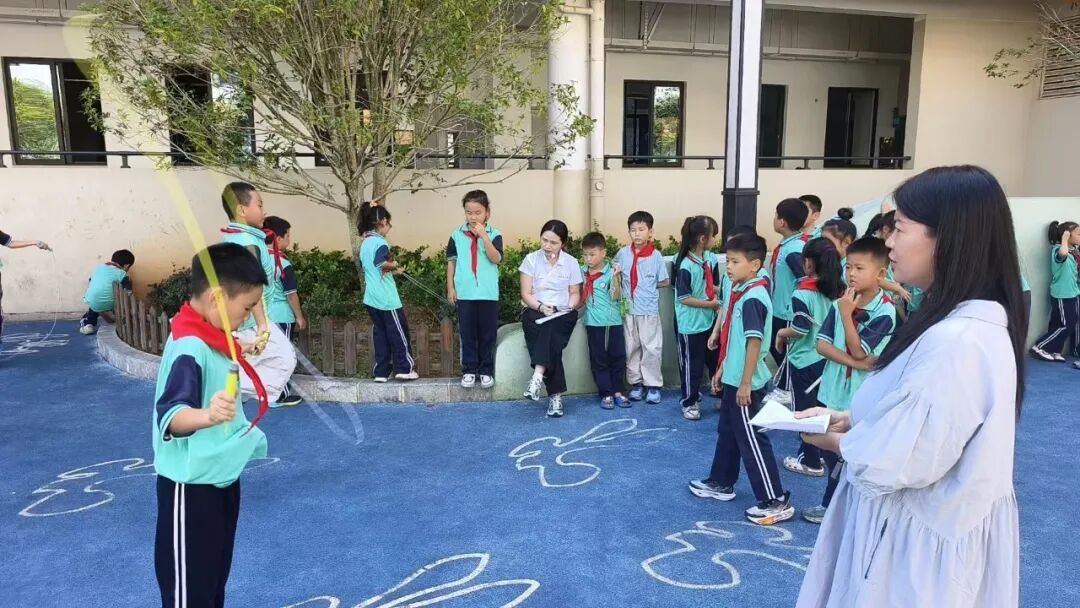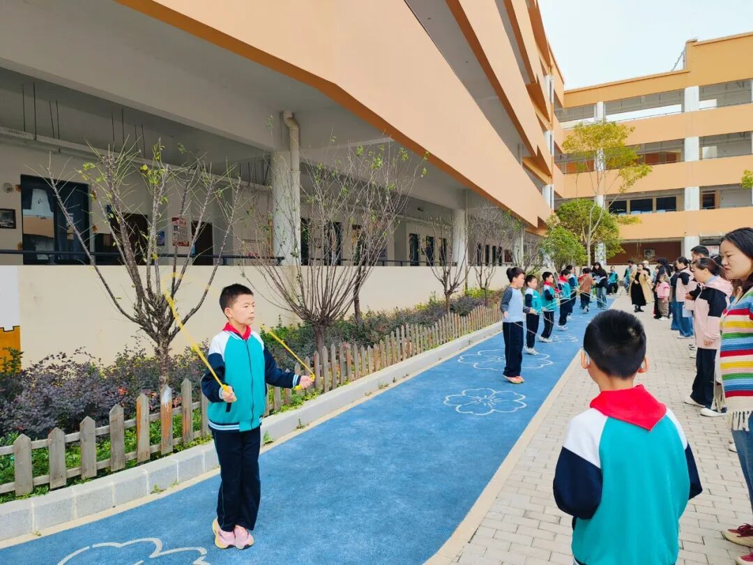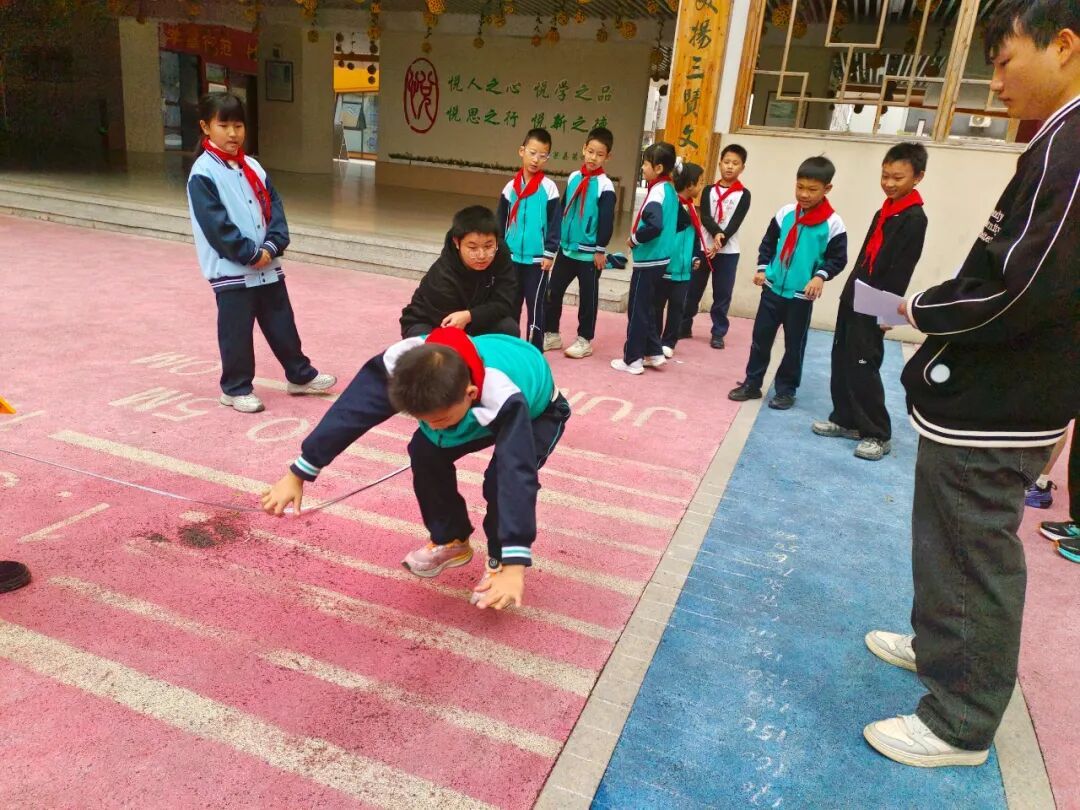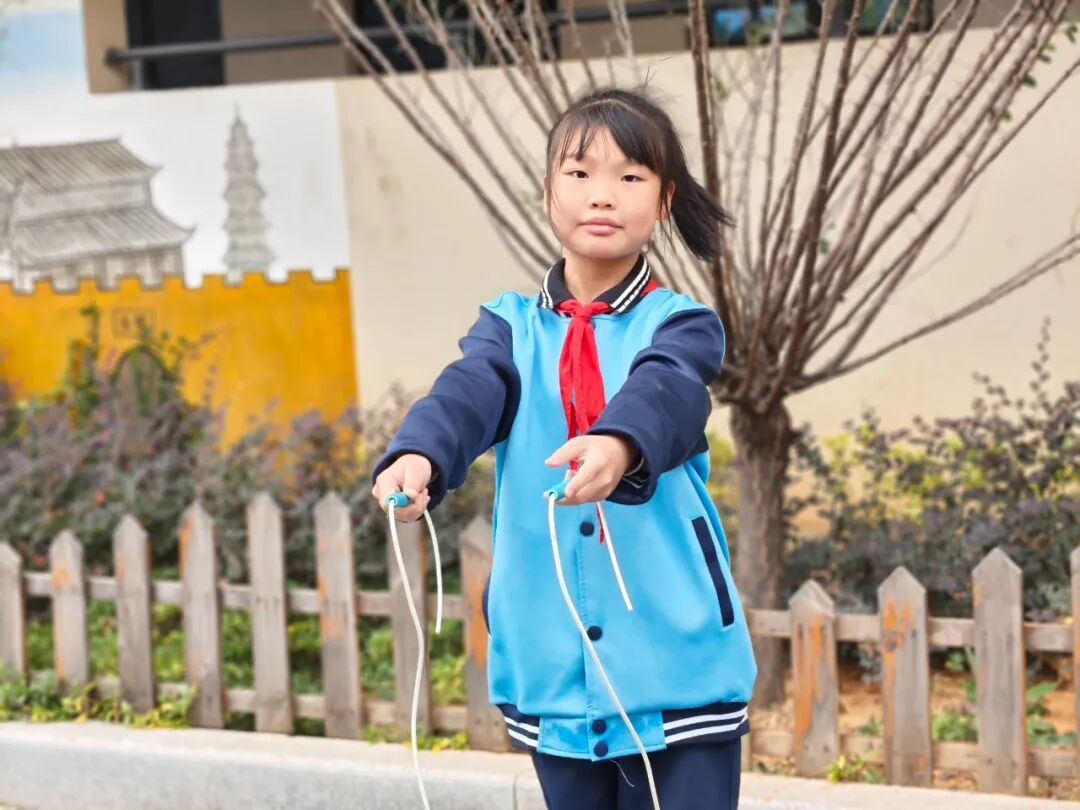 跑道上,短跑选手像离弦的箭,冲刺的身影风驰电掣;中长跑赛道上,孩子们咬牙坚持,用耐力对抗疲惫,汗水滴落却从不停步。田赛场上同样精彩:立定跳远时奋力一跃,划出青春的弧线;垒球出手的瞬间,力量让球在空中留下残影;一分钟跳绳的“嗖嗖”声里,绳子翻飞如彩虹,让人看得目不暇接。