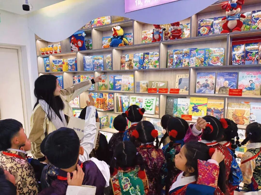 离开社史长廊,孩子们来到书报刊产品陈列区。这里集中展示着中少总社有代表性的优秀文化产品,政治启蒙类、科学类、文学类、教育类、心理类等读物按中心分类陈列,像一座“少儿文化宝库”。