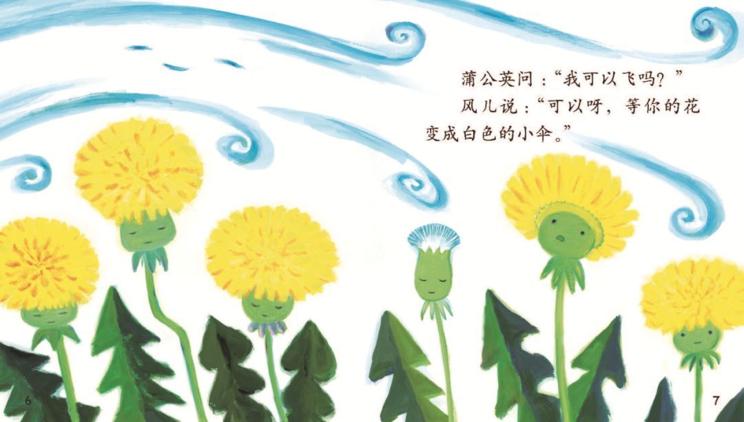 风儿说:“可以呀,等你的花变成白色的小伞。”
