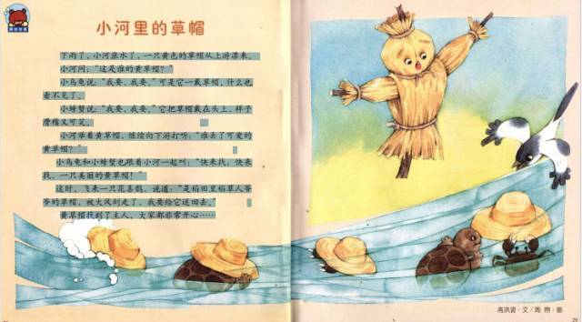 小 乌 龟 和 小 螃 蟹 也 跟 着 小 河 一 起 叫 : “ 快 来 找 , 快 来 找 , 一 只 美 丽 的 黄 草 帽 ! ”