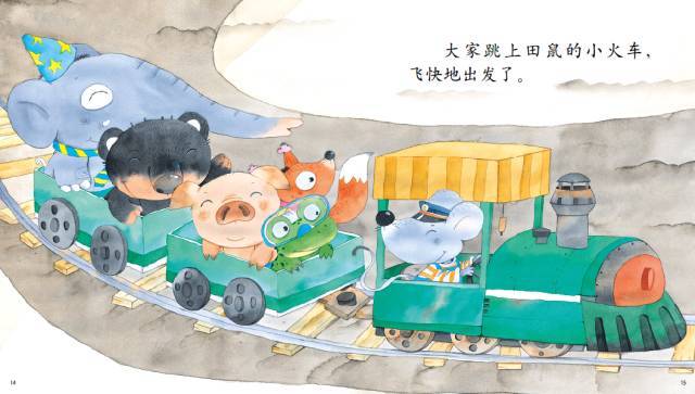 大家跳上田鼠的小火车,飞快地出发了。