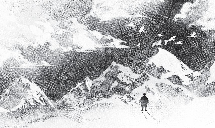 韩三伏知道那些 “牲口”,他们不久前才翻越那些雪山到这地方。他们走的就是白帽子一样的山顶,他们不能在豁口处走,豁口地方都是雪,深不可测,稍不留意就会把人埋在雪里,永远出不来了。