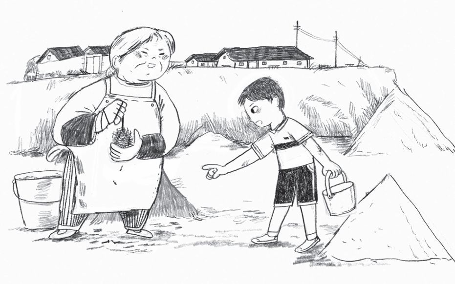 有一天傍晚,我从白村回来,看见玉排正跪在我们村外那条没水的土沟里扒拉。我觉得很奇怪,回家以后,我把这件事告诉我妈。我妈淡淡地告诉我,玉排在扒铁钉。我觉得我妈的表情也有些奇怪,似乎在有意克制什么。吃完饭以后,我看到我妈拿着那两本嘎嘎新的暑假作业朝我走来,我终于明白了。