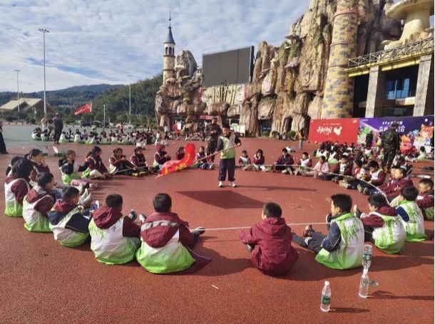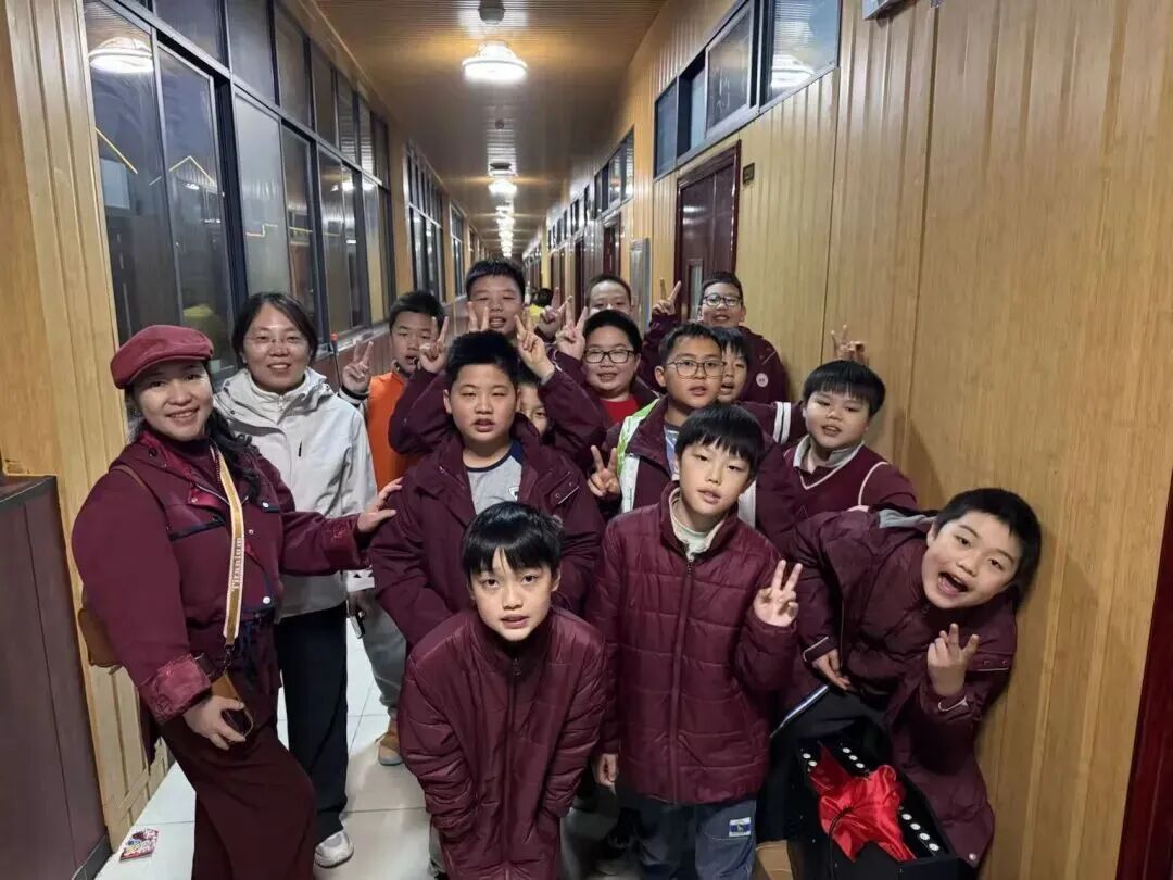 各班节目轮番登场:芭蕾舞者踮起脚尖演绎《天鹅湖》的优雅,街舞少年用机械舞步展现青春活力,艺术体操的小演员挥舞彩带划出优美弧线。欢声笑语在夜空中回荡。随后,老师们也带着孩子们欢快跳起兔子舞,现代舞、呼应着“伴音研学班”的韵律,更点燃了全场的热情。这场充满童真童趣的晚会,既展现了学子们的多才多艺,更让白天的文化浸润在欢乐氛围中升华,为研学之旅描绘出绚丽多彩的句点。