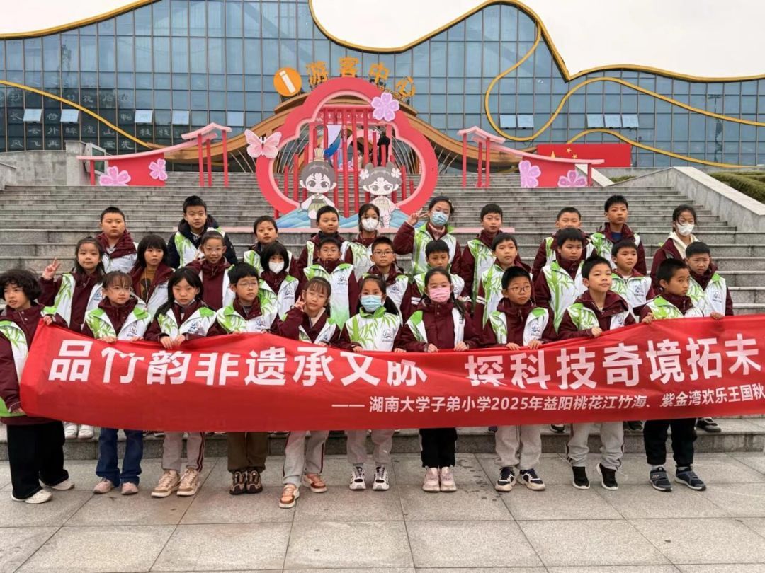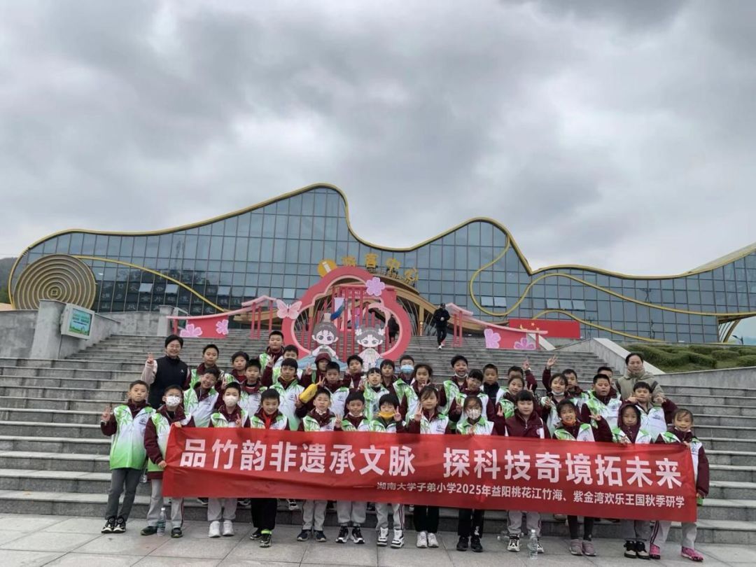 晨光熹微,书卷气韵与蓬勃朝气已交织成行。湖南大学子弟小学四至六年级的学子,暂别书香课堂,奔赴益阳,开启一场为期两日的秋日寻访。此行,意在碧波万顷的竹海间叩问千年文脉,亦于欢声笑语的乐园里激荡青春豪情,是一场知行合一的深刻修习。