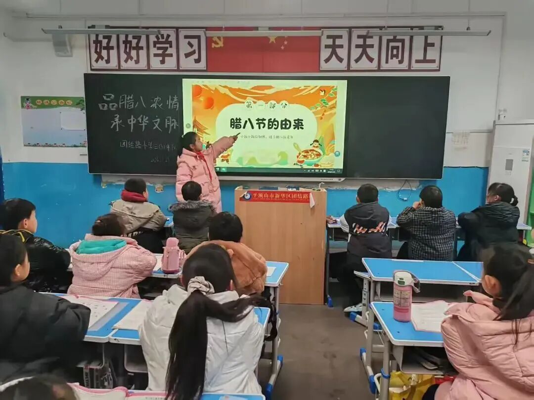 队会课上,辅导员们化身“民俗讲解员”,通过生动的图片、趣味的短视频和详实的文字,让队员们了解了腊八节的起源、学习了腊八节习俗。