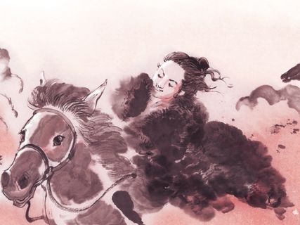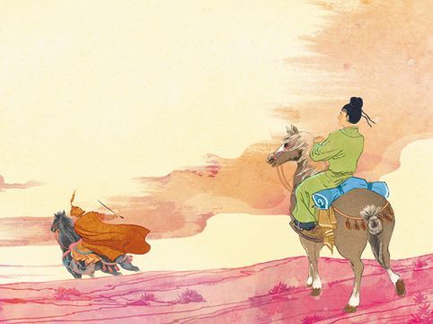 还有《李波小妹歌》里的少女,“褰裙逐马如卷蓬”,骑着马在原野上飞驰,左右开弓的飒爽,丝毫不输男儿。