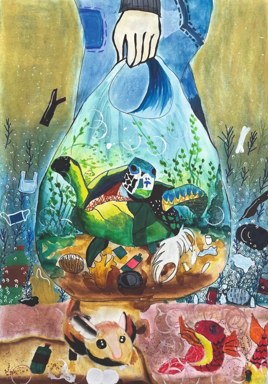 拯救被海洋垃圾困住的绿海龟