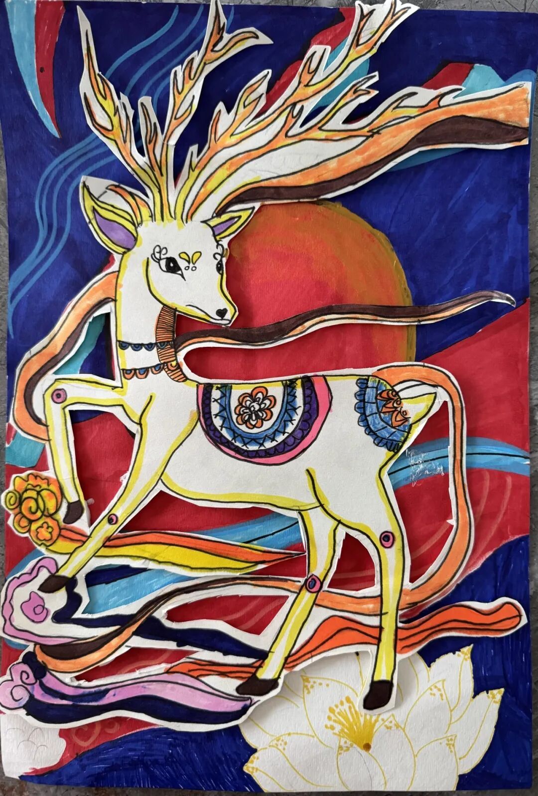 当我的画笔落下最后一抹色彩,我知道,那历史的巨响与今日的欢歌,都在我滚烫的掌心里,共 鸣不息。