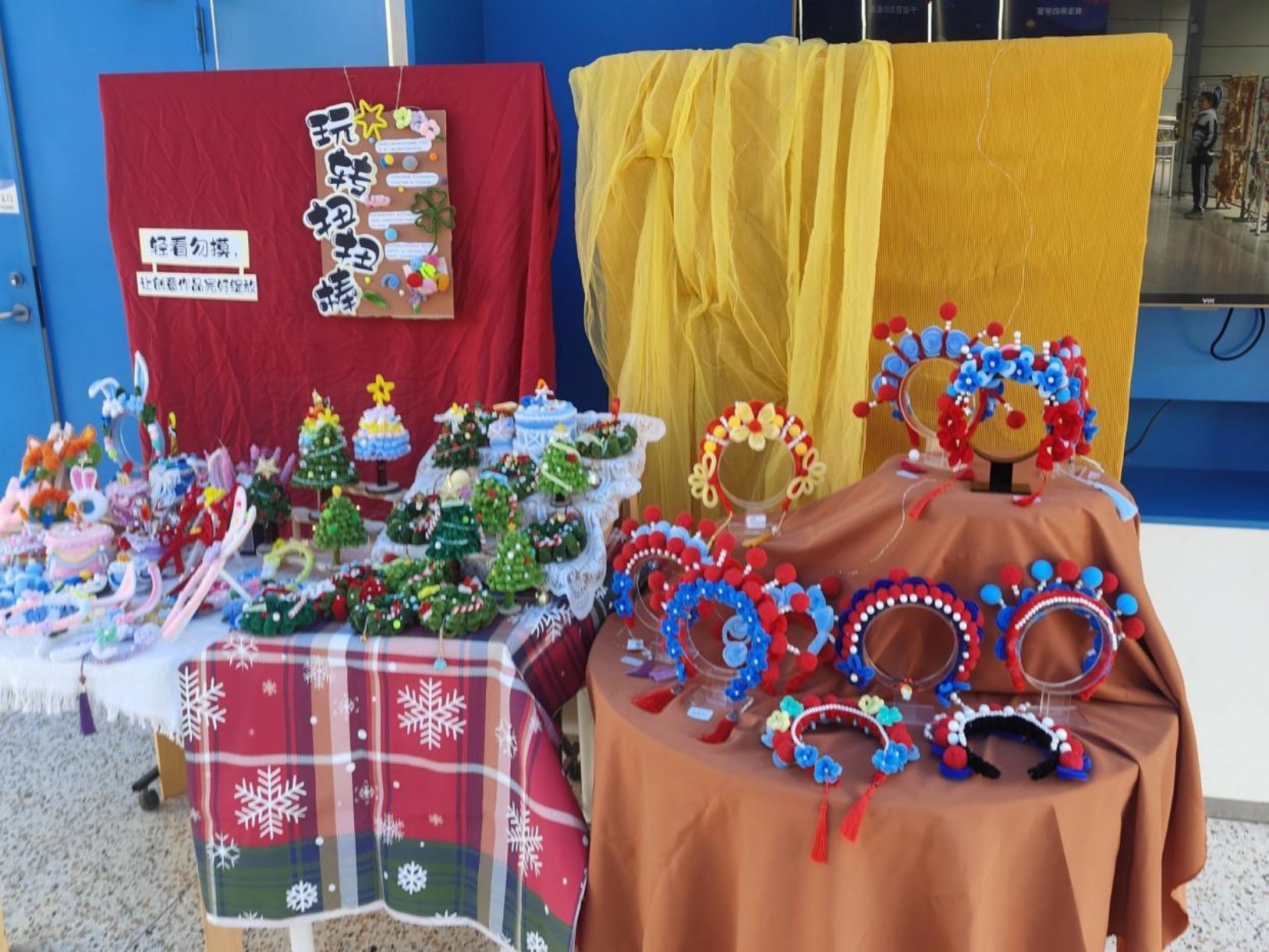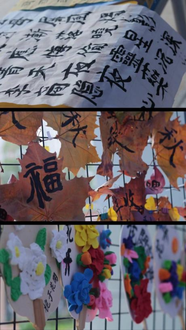 校园环境的打造成为本次活动的亮眼开篇。我们打破传统展示模式,将社团活动成果与学生常规作业展览深度整合:长廊间,学生的常规作业整齐陈列,书写、绘画、手工作品等作品勾勒出日常学习的成长轨迹;教室旁,科创、书法、扭扭棒、心灵绘画等社团的成果展板错落摆放,家长们驻足观摩,零距离触摸孩子在社团特色学习中的蜕变,也真切感受到孩子在常规学习与特色发展中的双重成长。校园里,气球与绿植相映成趣,学生作品如繁花铺展,巧思与诗意让成长的美好触手可及。