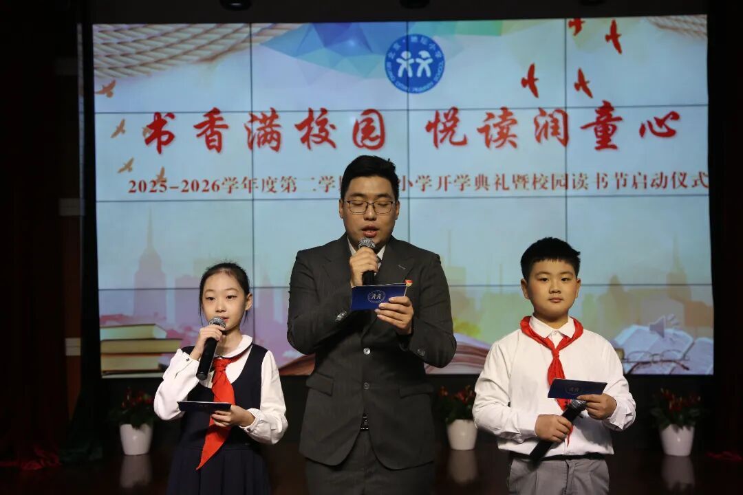 学校党支部安欣颖书记在致辞中向师生送上新学期的祝福与期许,强调书籍的育人价值,发起“我家的阅读时光”家庭共读倡议,呼吁每周六晚全家共读一小时,让书香飘进家庭,让阅读成为习惯,在书香中收获成长。