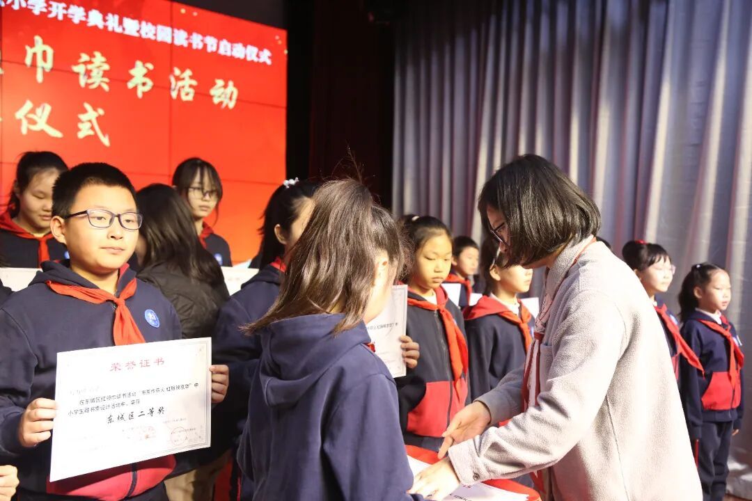 在2025年东城区红领巾读书活动中,我校师生积极参与并收获市区各级各类奖项。在活动现场,学校党支部辛竹叶副书记和德育罗茜茜副校长为获奖同学代表颁发奖状。