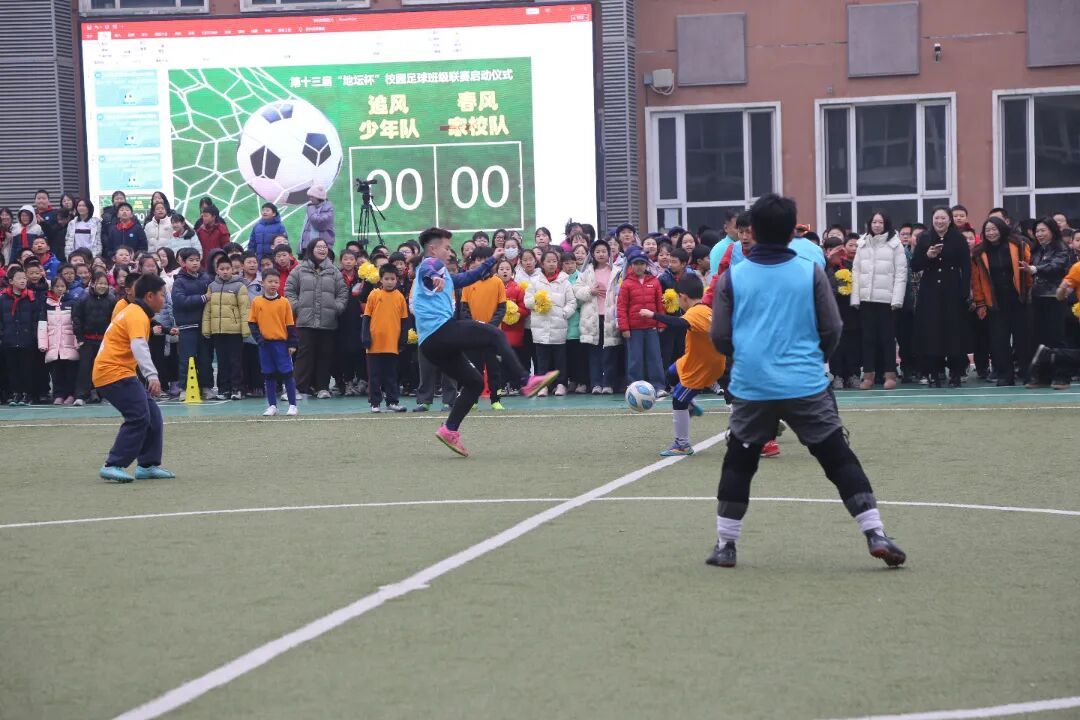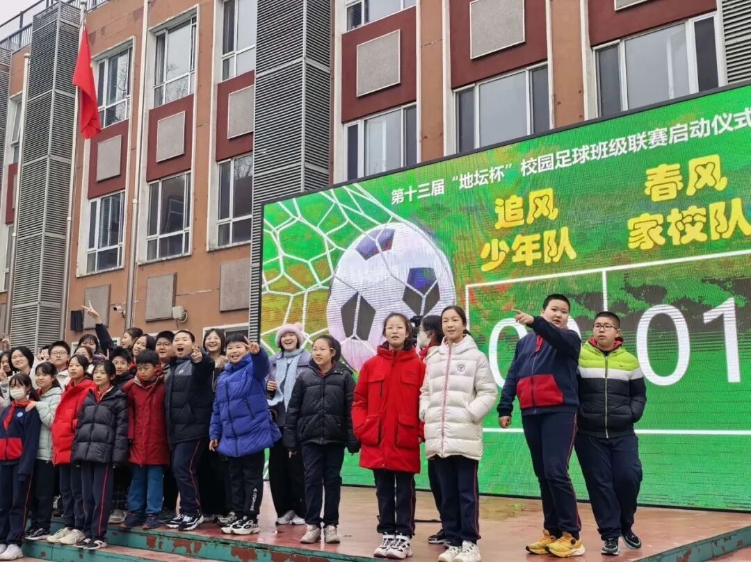 春启新程,逐梦绿茵。开学第一天,我校全体师生齐聚操场,以足球为媒,以运动为桥,隆重举行“我们的班超”——第十三届“地坛杯”校园足球班级联赛启动仪式。