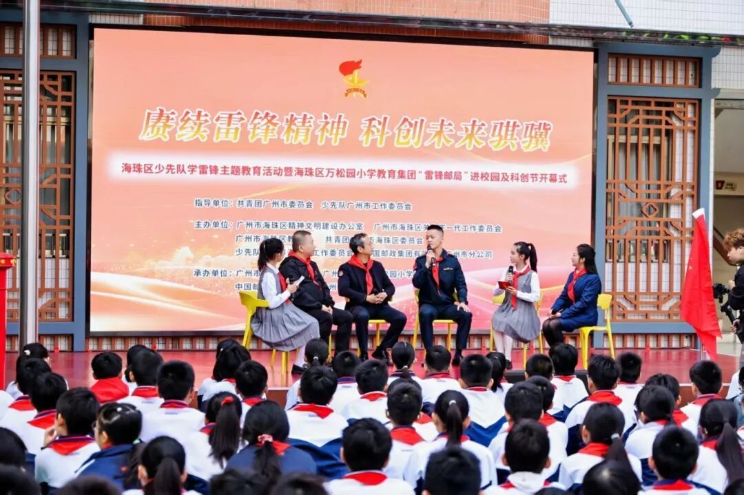 在全场整齐的倒数声中,万松园小学教育集团“雷锋邮局”正式隆重揭牌。这标志着又一座“雷锋邮局”在海珠区校园里安家落户。一本本加盖专属纪念邮戳的雷锋日记簿,被郑重递交到各个中队。队员们将以实际行动,共同续写新时代的学雷锋篇章。