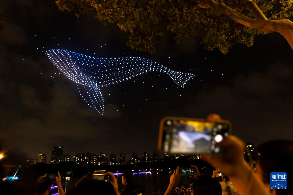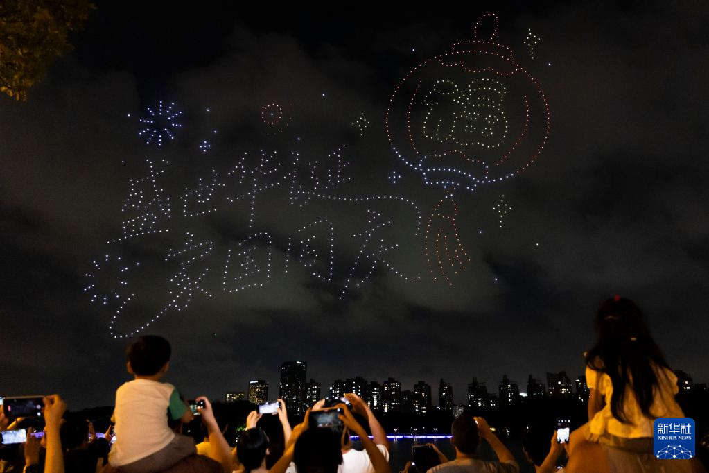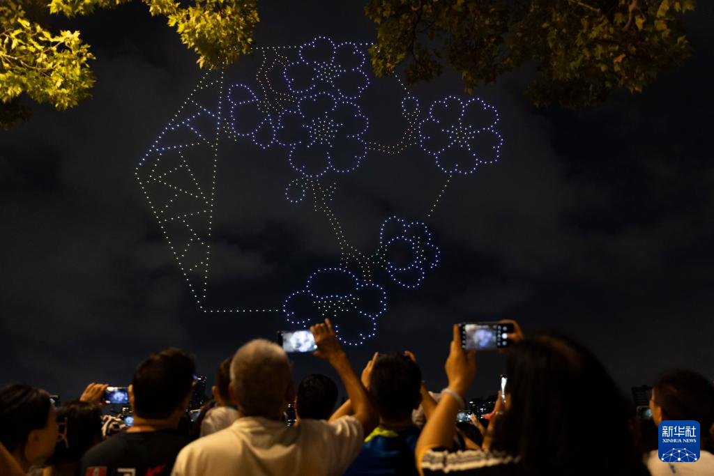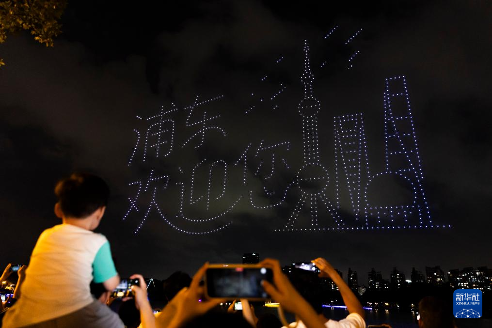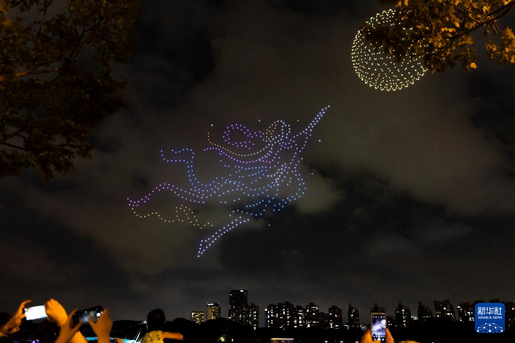 当晚,“世纪璀璨——无人机灯光秀”表演在上海世纪公园举行,1000架无人机在世纪公园镜天湖上空组成“国庆快乐”“盛世华诞 家国同庆”“浦东欢迎您”等字样和玉兰、荷花、梅花等花卉图案,在国庆假期即将到来之际,为市民游客献上一场视觉盛宴。