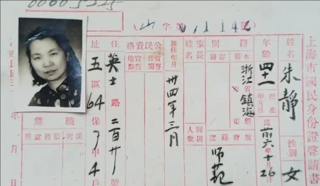 1946年,朱枫以朱静之名填报“上海市国民身份证声请书”,住址在英士路220号,同年其女儿、丈夫的哥哥相继搬来。朱枫入党以后,在上海情报部门领导下从事财经工作。由于住址变化及工作需要,按照当时的户籍管理规定,她在1947年9月1日以新的化名陈朱弥明再次填报了“上海市国民身份证声请书”。这就是上海市档案馆珍藏的朱枫第二份户籍卡档案。