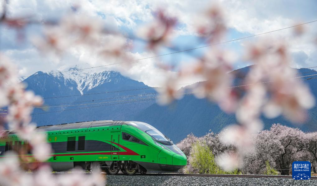 4月2日,复兴号列车穿行在拉林铁路林芝段。