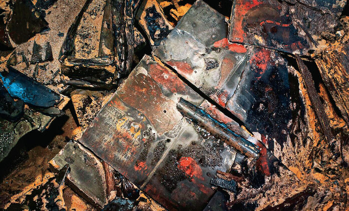 海昏侯墓出土的竹简在剥离前的样子(资料照片)。新华社发(江西省文物考古研究院供图)