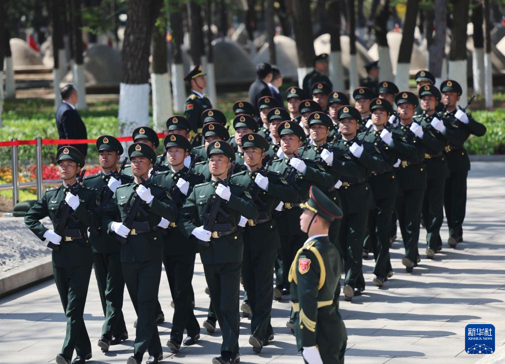 4月23日,礼兵鸣枪向志愿军烈士致敬。新华社记者 韩赫 摄