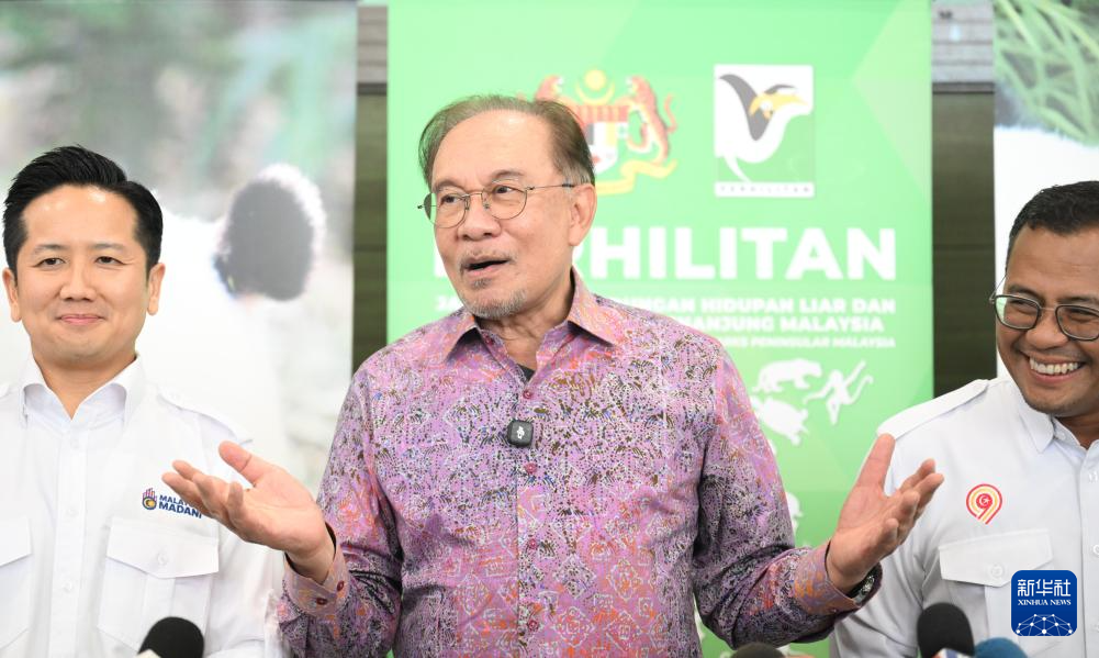 1月10日,马来西亚总理安瓦尔(中)在吉隆坡附近的马来西亚国家动物园出席相关活动并讲话。新华社记者 程一恒 摄