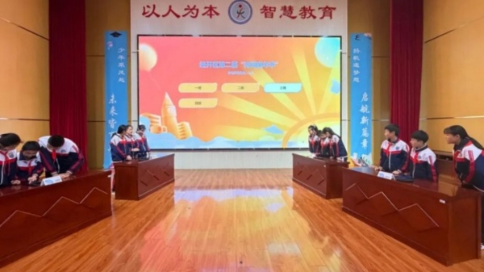 第一轮必答题,各班选手认真思考、机智作答,展现了深厚的诗词功底和对古典文化的热爱,让在场的老师和同学们连连惊叹。第二轮抢答题,抢答环节不仅考验诗词的积累,更是比拼思维敏捷和反应速度。各队选手眼疾手快、争分夺秒,上演着一场场紧张刺激的“抢分大战”。