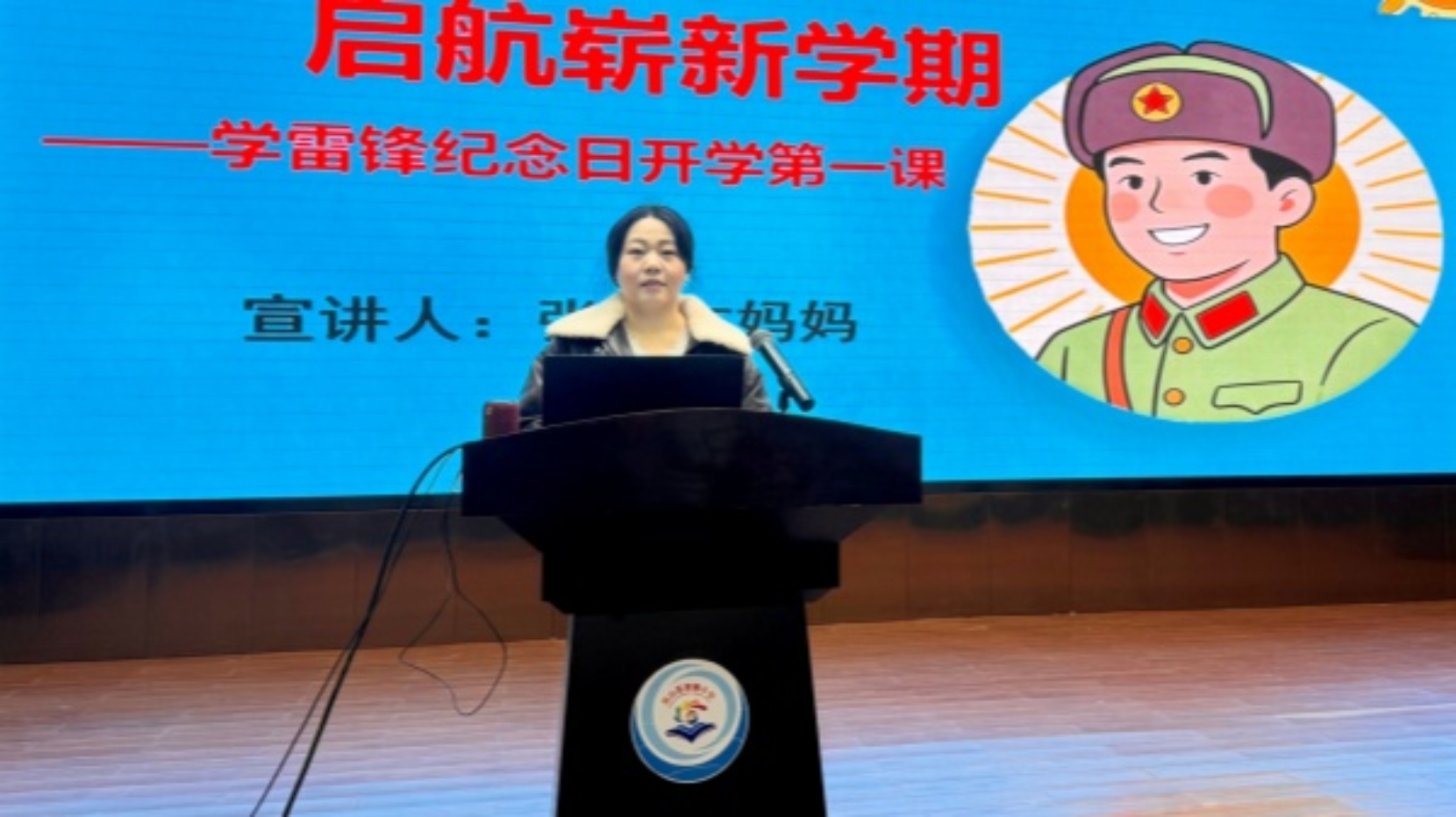 本次宣讲特邀学校百业家长团成员、岚山区退役军人事务局宋春晓担任主讲人。宣讲中,她结合雷锋故事、军人本色与志愿服务经历,用朴实生动的语言,深刻阐释雷锋精神的时代内涵,讲述奉献、友爱、互助、进步的动人故事,带领队员们重温雷锋事迹、感悟榜样力量,鼓励大家将雷锋精神融入日常学习生活,从小事做起、从身边做起,争做有责任、有担当、有温度的新时代好少年。