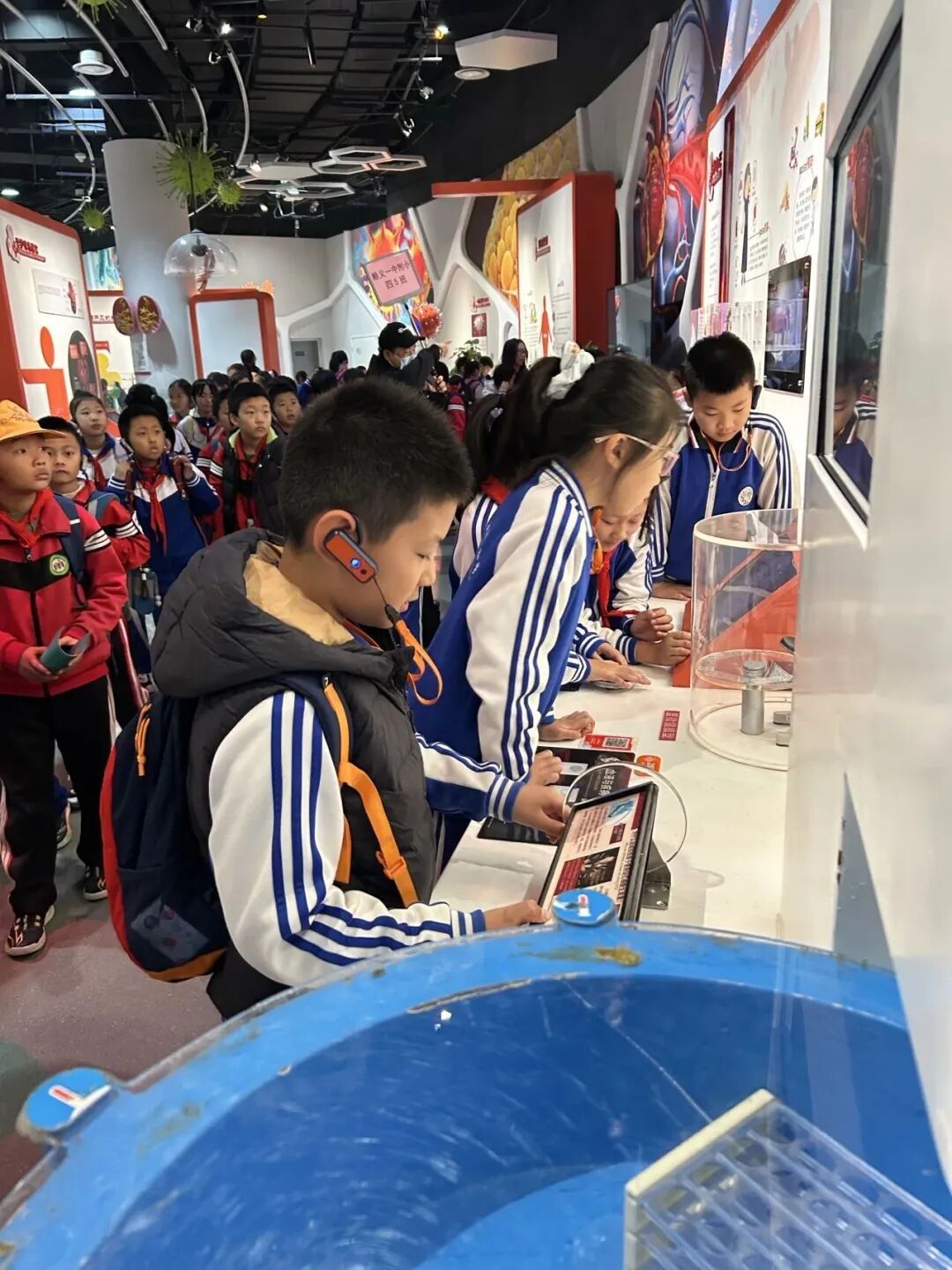 在讲解员老师的带领下,队员们有序参观了北京科学中心的主展馆。从“生命之源”到“物质之妙”,从“浩瀚宇宙”到“智慧生活”,每一个展区都像一扇打开新世界的大门。队员们聚精会神地聆听讲解,了解人体结构的神奇、物质变化的规律、地球生态的奥秘以及前沿科技的应用。
