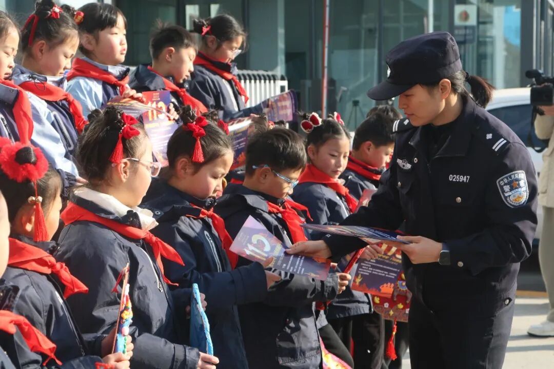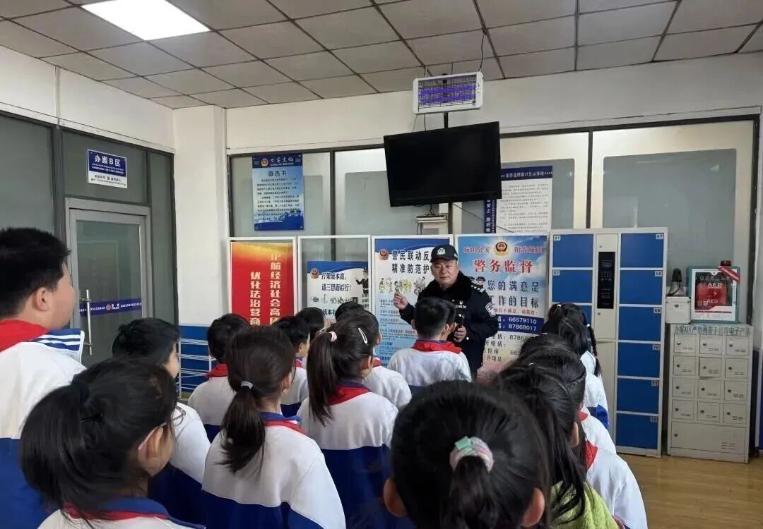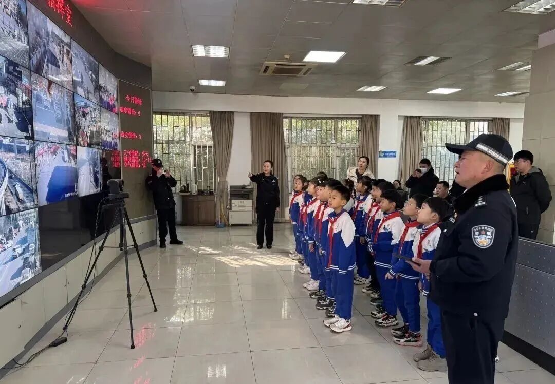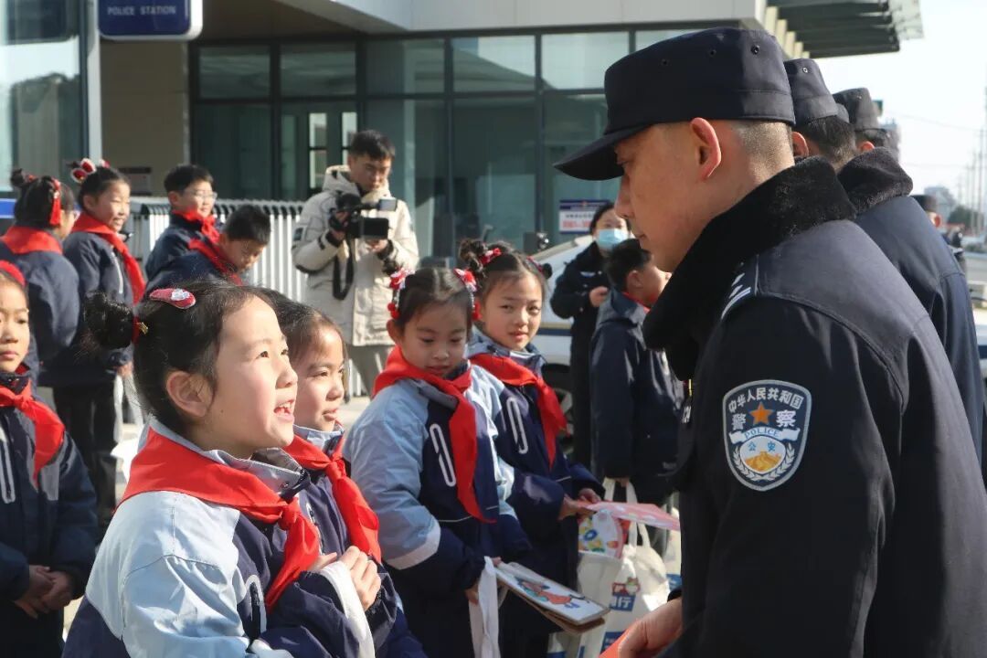 为庆祝第6个“中国人民警察节”暨第40个“110宣传日”,安徽省淮北市泉山路小学组织队员们走进相山分局南黎派出所,开展“‘红领巾'致敬‘警察蓝'平安护航伴成长”主题实践活动。