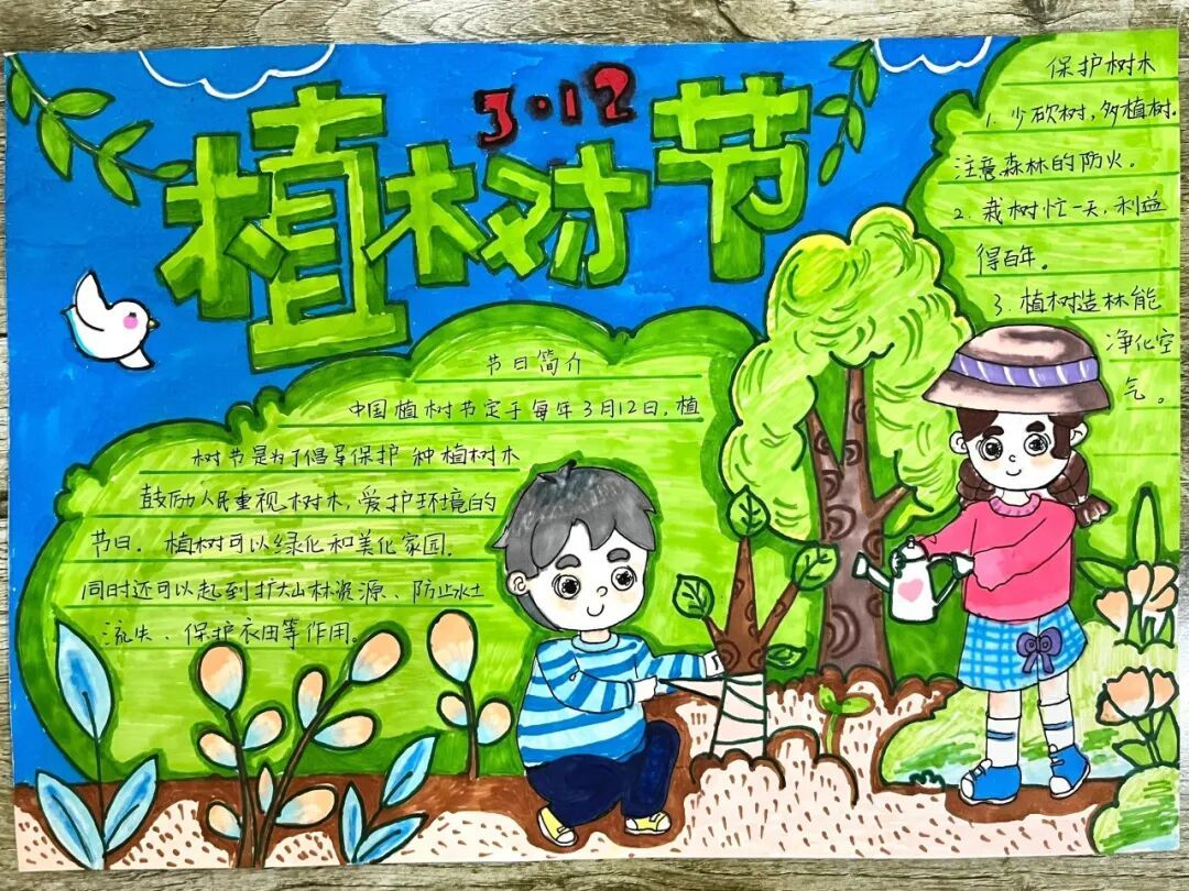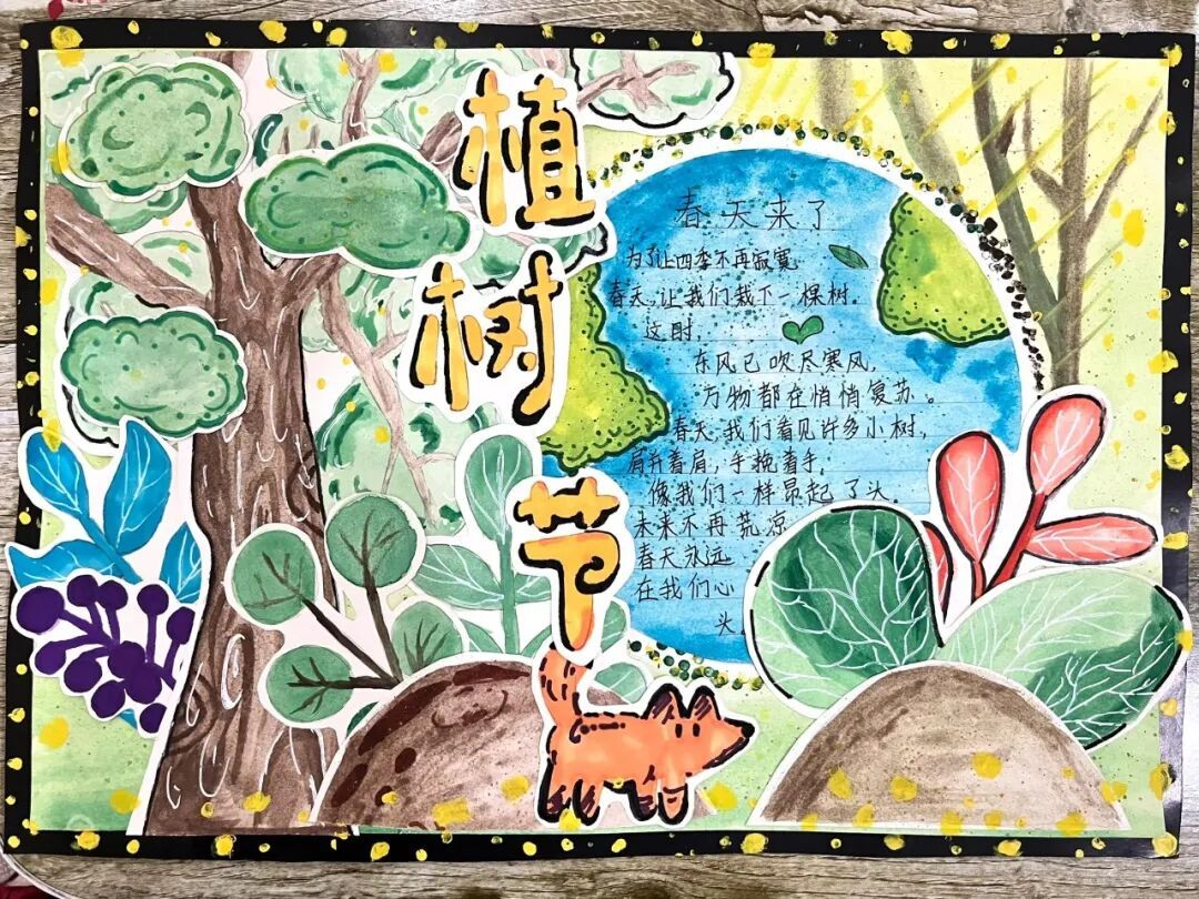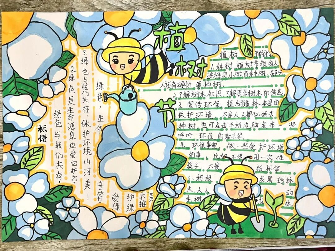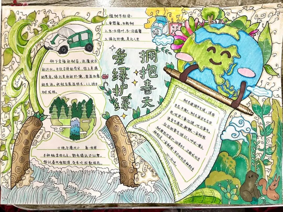 一笔一画绘初心,一纸一画寄深情。队员们拿起画笔,将树木知识、环保理念、爱绿心愿融入色彩与文字中。一幅幅作品创意满满、绿意盎然,用童真笔触描绘心中的美丽家园,让绿色理念在笔尖传递、在心中扎根。